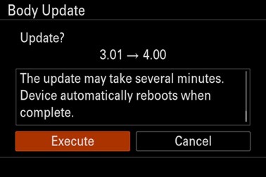 - 更新完成後,相機將自動重新啟動。重新啟動後,在機身更新完成中按下確定。
